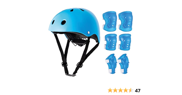 Think Gizmos 7 In 1 Kids Helmet And Pads Set Adjustable Kids Protective Gear Set Ages 6 Knee Pads Elbow Pads Wrist Pads For Cycling Roller Skating Skateboard Pogo Jumping Blue Kids